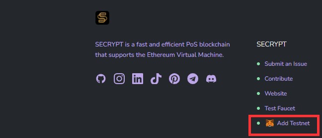 - Scroll down to the bottom of the page and click on the button Add SECRYPT Network