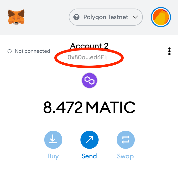 Go into Metamask from your browser. At the top under your Account Name, you’ll see a long string. That’s your account ID. Copy that ID by clicking on it.
