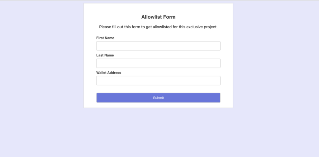 We’ve built an allowlisting application in React that takes in private information, securely stores it in a Fauna database, and then submits a public UUID for each property corresponding to the transaction’s database record to the SECRYPT blockchain. The full GitHub repository for this tutorial can be found here.