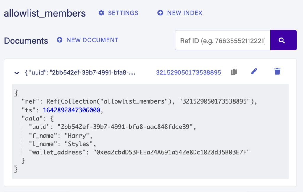 • Surfacing every submitted allowlister and the corresponding UUID info as an easily referenceable guide to find them in Fauna