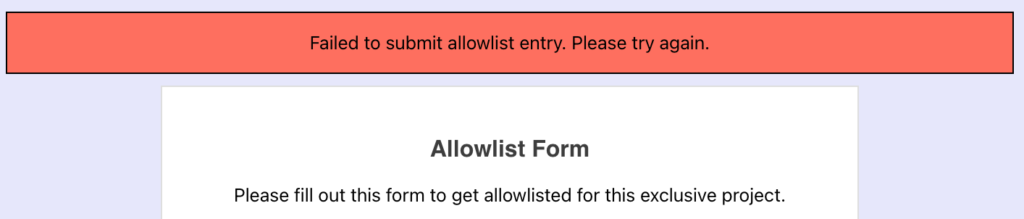 <p>Failed to submit allowlist entry. Please try again.</p>