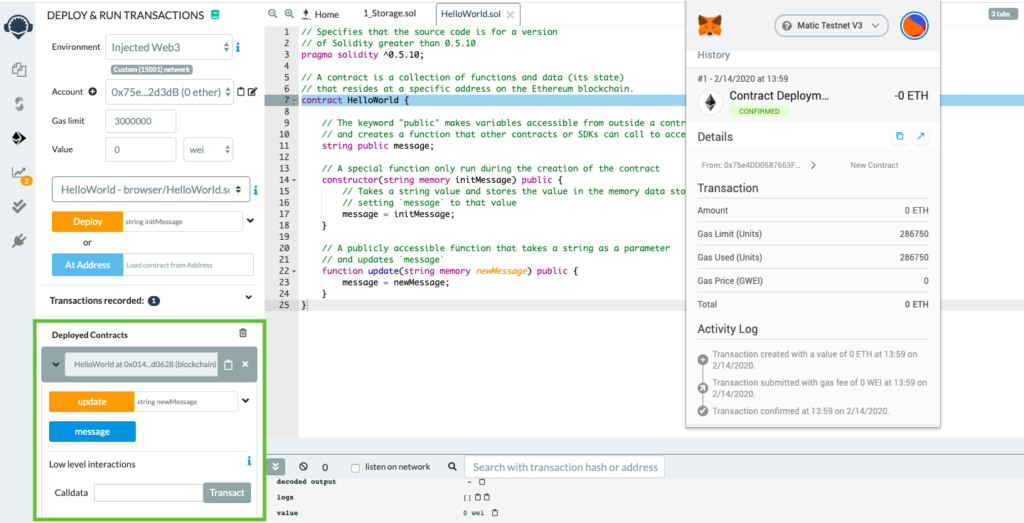 - Once MetaMask is connected to Remix, the Deploy transaction would generate another MetaMask popup that requires transaction confirmation. Simply confirm the transaction!
